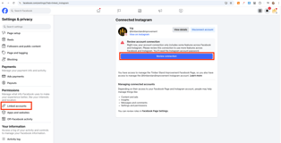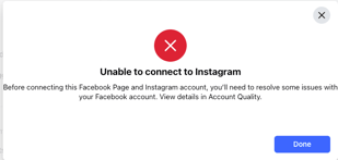 If a Business Facebook page is unable to link an Instagram account and a pop-up appears stating to 'Review Connection' and view details in Account Quality, follow these steps to resolve the issue: