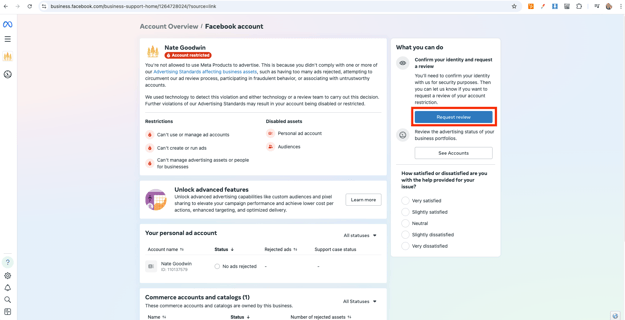 Follow the prompts to submit a review request to Meta.